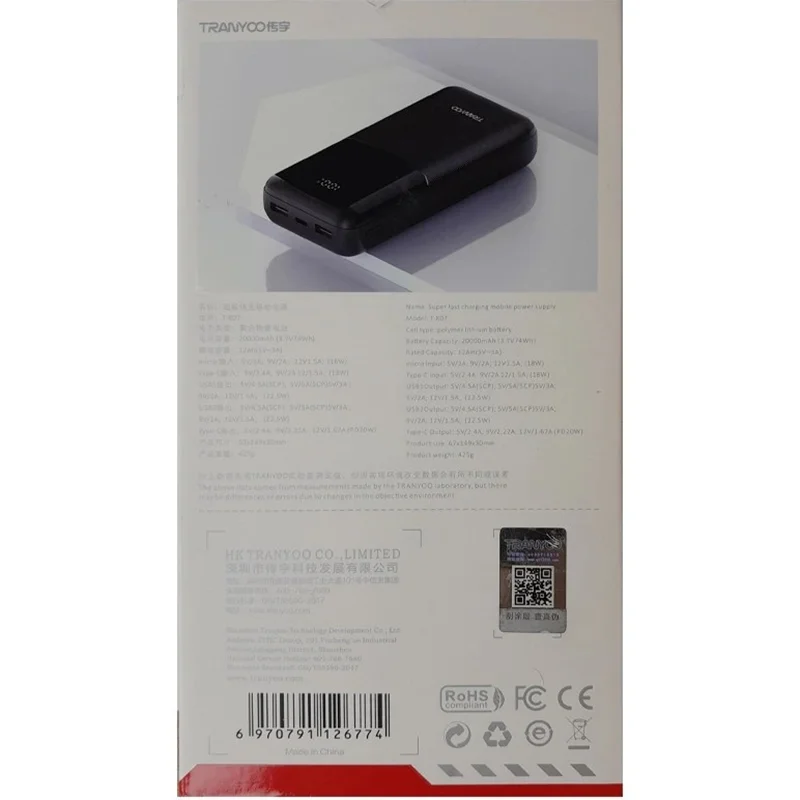 از ویژگیهای پاوربانک ترانیو Tranyoo میتوان به موارد زیر اشاره کرد: