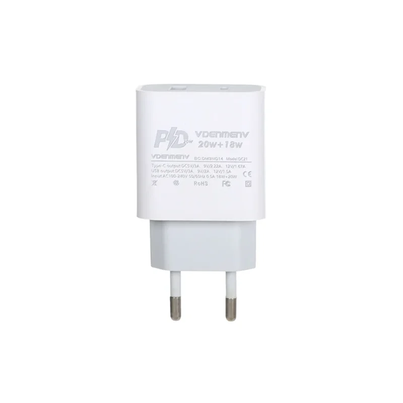 شارژر دیواری 20W فست و PD دو پورت Denmen مدل DC21 با طراحی مدرن و رنگ سفید، انتخاب ایدهآل برای شارژ سریع و همزمان دو دستگاه است. تکنولوژی PD و فست شارژ، زمان شارژ را به حداقل میرساند و کارایی را افزایش میدهد. مناسب برای دستگاههای iOS و Android، این شارژر همراه همیشگی سفر و زندگی روزمره شماست.