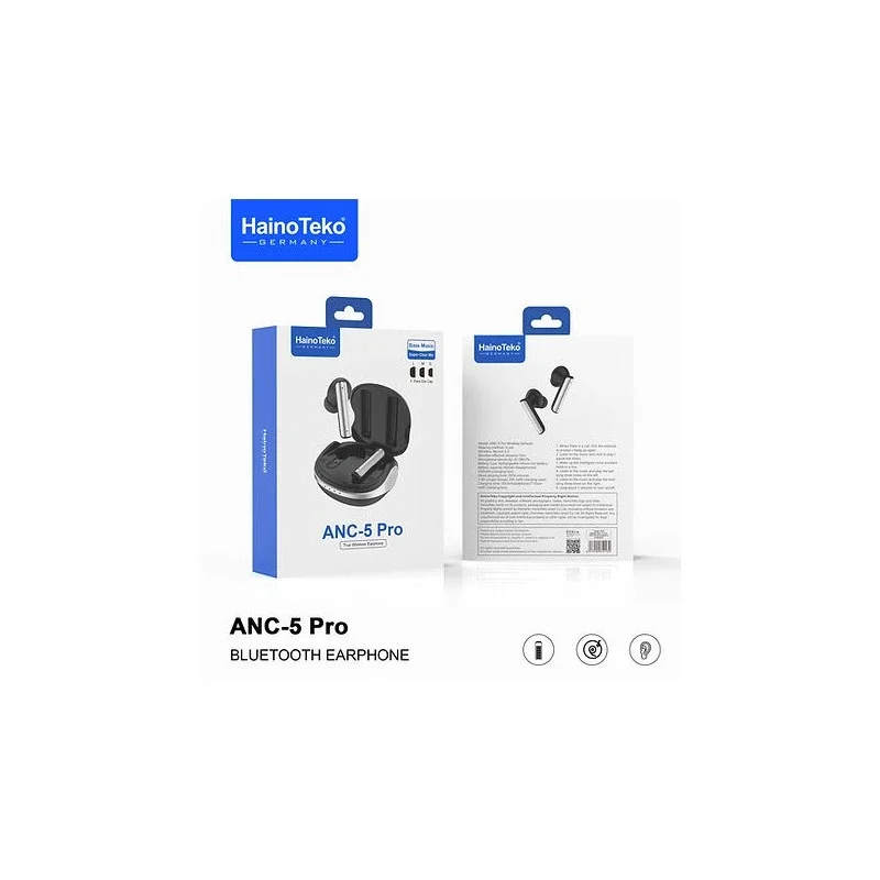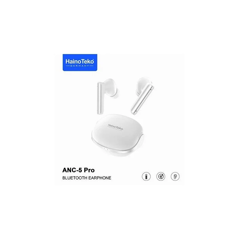 یک محصول خیلی خوب از برند آلمان Haino Teko به نام ANC-5 pro تولید شده، در ساخت و طراحی این محصول از پلاستیک فشرده (ABS) بکار رفته که مقاومت این کالا را بالا برده است. دو گوش است، اما به صورت تک گوش مورد استفاده قرار می گیرد. از بلوتوث نسخه 5.3 پشتیبانی می کند و با سیستم عامل های اندروید و IOS سازگاری می کند. قابلیت های این هندزفری برد بلوتوث 10 متر، نشانگر LED، پاسخ فرکانسی 20-20000 هرتز، مناسب خانم ها و آقایان، مجهز به میکروفون، حساسیت میکروفون43 DBV/Pa است. ویژگی ویژگی های خاص شارژدهی گوشی ها تا در حالت استندبای 24 ساعت، طراحی ارگونومیک مناسب با تمام گوش ها، قابلیت استفاده گوشی ها به صورت تکی، مصرف انرژی بسیار کم، دارای نویز کنسلینگ می باشد. اقلام درون این جعبه اقلام همراه دو گوشی، دفترچه راهنما، یک باکس شارژ، 3 عدد سری سیلیکونی S/M/L، یک کابل شارژ تایپ سی 60 سانتی متری است. باتری کیس این کالا 300 میلی آمپر و باتری ایرفون ها 30 میلی آمپر که تا 5 الی 6 ساعت با میزان صدای متوسط ساعت در حالت مکالمه و موسیقی و در حالت استندبای 24 ساعت جوابگو است. این کالا به دلیل نویز کنسلینگ بودن، در هنگام استفاده طولانی مدت برای مکالمه و موسیقی از سردرد شدید و خستگی گوش ها جلوگیری می کند و لذت مکالمه با کیفیت عالی را کامل به شما می دهد.