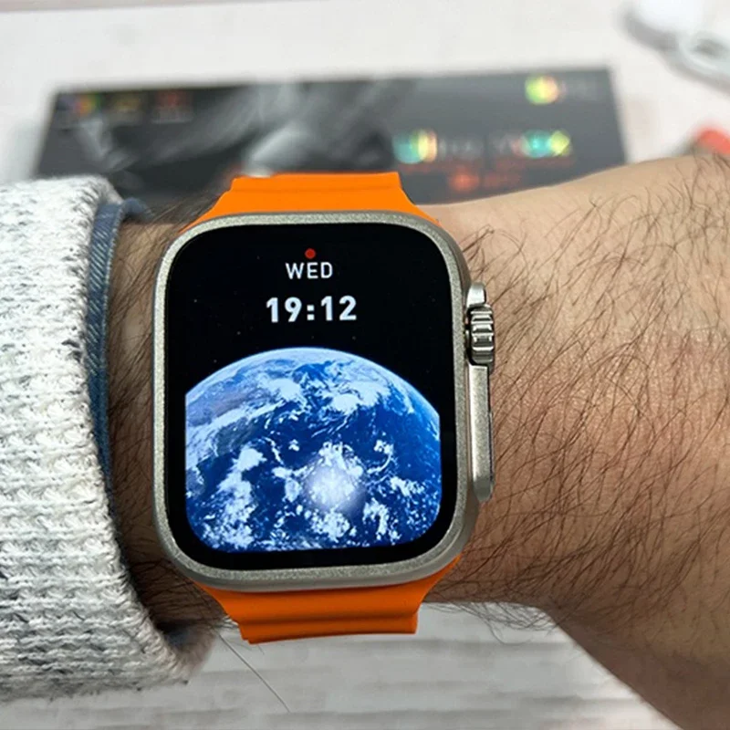 ساعت هوشمند مدل X8 ultra max , های کپی دقیق از روی مدل اپل واچ سری 8 اولترا سایز 49 میلیمتر ( جدید ترین و قوی ترین ساعت اپل ) است ، این ساعت دقیقاً بر اساس اپل واچ اولترا ساخته شده و نسبت به قیمت خود از امکانات خیلی فراوانی برخوردار هست یکی از نقاط قوت این ساعت هوشمند صفحه نمایش بزرگ ، با کیفیت و وضوحی بی نظیر ، روشنایی خیلی زیاد نمایشگر که باعث جذابیت آن شده و در زیر نور خورشید هم میتوان به راحتی با آن کار کرد و حالت همیشه روشن صفحه نمایش است ، همچنین این ساعت دارای میکروفون و اسپیکر و قابلیت تماس و پاسخ به تماس ها با نمایش اسم مخاطبین به فارسی میباشد ، بدنه استیل ضد زنگ با کیفیت بالا ، مشابه مدل اصلی به همراه بند سیلیکونی مدل اوشن ( بند خاص اپل واچ اولترا ) باعث شده که ساعت هوشمند X8 ultra max نزدیک ترین کیفیت ساخت را به اپل واچ اولترا داشته باشد . از امکانات این ساعت میتوان به منوی بسیار روان و سریع به همراه سخت افزار قوی ، مقاومت در برابر آب و دارای گواهی iP 67 ، سنسورهای سلامت ضربان قلب ، فشار خون ، اکسیژن ، سنسور جدید دمای بدن ، فشار سنج و ارتفاع سنج ، قدم شمار ، کالری سنج ، مسافت سنج ، چندین حالت مختلف ورزشی، سه دکمه فعال مجیک باتون ، پاور و اکشن باتون ، اشتراک گذاری موقعیت مکانی ، پشتیبانی از زبان فارسی در تمام اعلانات و قابلیت تغییر زبان ساعت به زبان فارسی ، پشتیبانی از برنامه معروف Wearfit Pro و قابلیت دانلود واچ فیس های فراوان اشاره کرد .