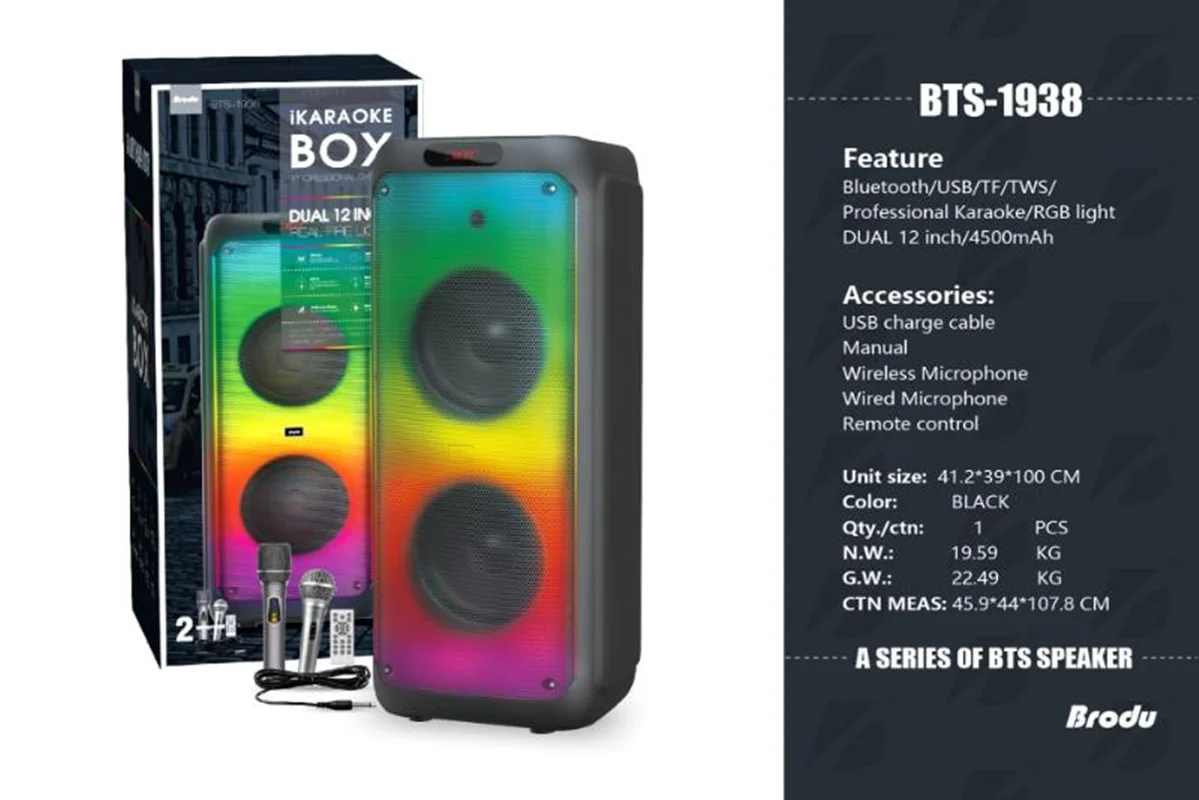 صدای فوقالعاده و بینقص را با اسپیکر شارژی برودو BTS 1938 تجربه کنید. این اسپیکر با قابلیت اتصال به برق مستقیم، آماده است تا در هر لحظه و هر مکانی موسیقی محبوبتان را با کیفیتی بینظیر پخش کند. طراحی مدرن و حمل آسان آن، همواره همراه شماست. با برودو، لذت شنیدن را ارتقا دهید!