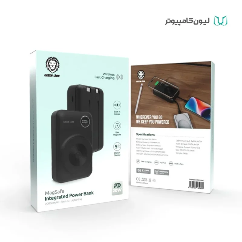 پاوربانک یکپارچه گرین مگسیف با ظرفیت فوقالعاده ۲۰۰۰۰ میلیآمپر و توان PD 20W، همراه همیشگی شما در هر شرایطی است. با طراحی شیک و قابلیت شارژ بیسیم، دیگر نگران خاموشی دستگاههایتان نباشید. این دستگاه نه تنها سرعت شارژ بالایی دارد، بلکه بهراحتی در کیف شما جا میگیرد. انتخابی هوشمندانه برای زندگی مدرن!